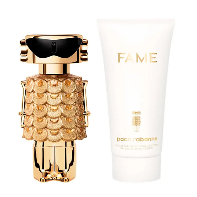 Découvrez l’élégance audacieuse du Coffret Paco Rabanne Fame, une alliance parfaite entre parfum et soin. Fame Eau de Parfum, envoûtant et moderne, révèle des notes fruitées de mangue et de poivre rose, sublimées par un cœur floral de jasmin et d’encens. Ce coffret inclut également un lait pour le corps délicatement parfumé, pour prolonger la sensation de luxe sur la peau. Pensé pour celles qui osent affirmer leur singularité, ce coffret incarne la signature Paco Rabanne : glamour et séduction. Offrez ou offrez-vous Fame, l'icône parfumée de la femme libre et résolument contemporaine.